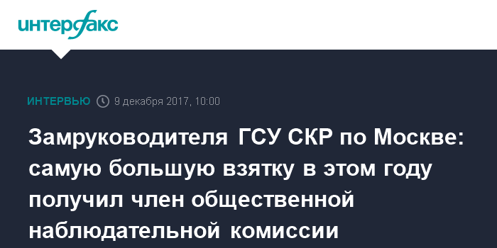 Замруководителя ГСУ СКР по Москве: самую большую взятку в этом году получил член общественной наблюдательной комиссии