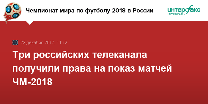 Три российских телеканала получили права на показ матчей ЧМ-2018