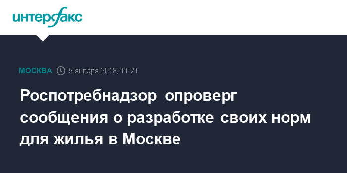 Москва. 9 января. INTERFAX.RU - Роспотребнадзор опроверг сведения СМИ о том, что для столичного жилья им разработан проект санитарных правил, отличных от действующих по всей стране.