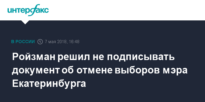 Москва. 7 мая. INTERFAX.RU - Мэр Екатеринбурга Евгений Ройзман заявил, что не намерен подписывать документ о внесении поправок в устав города, предусматривающих отмену прямых выборов главы города.