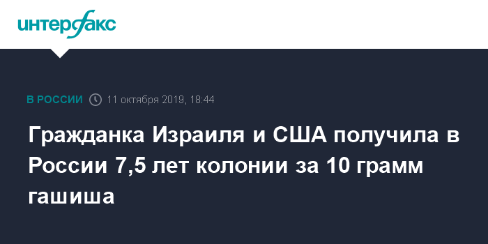 Гражданка Израиля и США получила в России 7,5 лет колонии за 10 грамм гашиша
