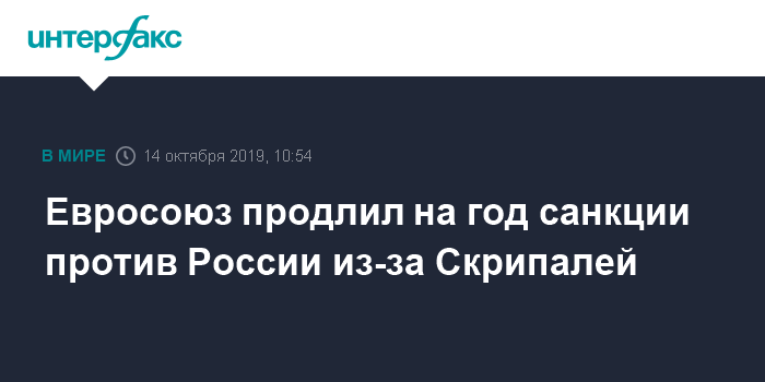 Москва. 14 октября. INTERFAX.RU - Совет Евросоюза продлил до 16 октября 2020 года санкции против России за применение химического оружия в Солсбери в марте 2018 года. Об этом говорится в пресс-релизе совета.