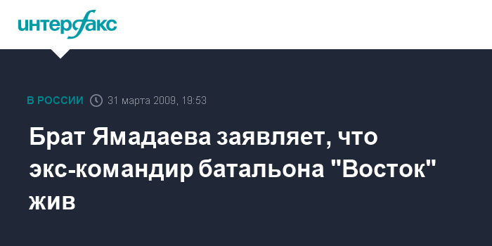 Москва. 31 марта. INTERFAX.RU - Брат экс-командира батальона "Восток", Героя России Сулима Ямадаева утверждает, что он жив.