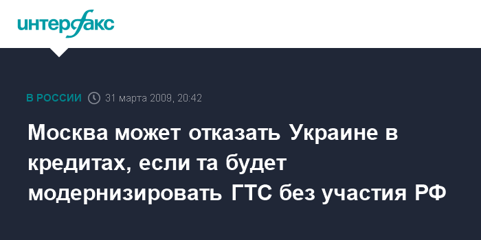 Москва может отказать Украине в кредитах, если та будет модернизировать ГТС без участия РФ
