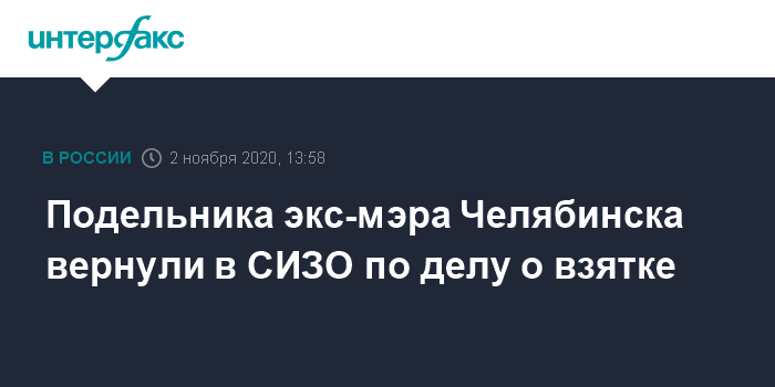 Москва. 2 ноября. INTERFAX.RU - Челябинский областной суд в понедельник вновь отправил под арест второго фигуранта уголовного дела о взяточничестве в мэрии Челябинска, бывшего начальника управления капитального строительства администрации города Евгения Пашкова.