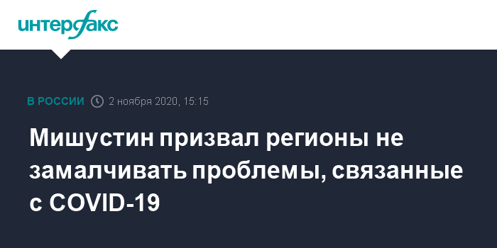 Москва. 2 ноября. INTERFAX.RU - Премьер-министр РФ Михаил Мишустин призвал регионы не замалчивать проблемы, возникающие в борьбе с коронавирусом, людям нужны не формальные отчеты, а решения вопросов.