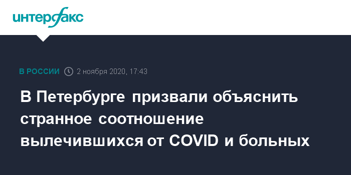 8 октября первый заместитель комитета по здравоохранению Петербурга Андрей Сарана в ответ на просьбу прокомментировать необычное соотношение числа больных и выздоровевших сообщил журналистам, что не подает подобные данные в оперативный штаб. При этом он добавил, что статистика заболевших формируется оперативнее, чем статистика по выздоровевшим.