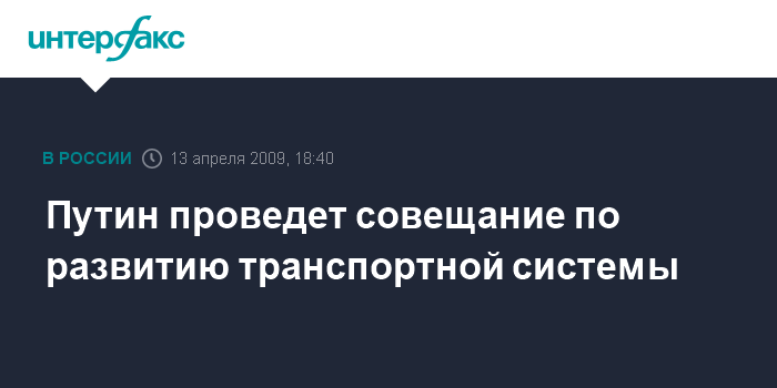 Москва. 13 апреля. INTERFAX.RU - Премьер-министр РФ Владимир Путин во вторник совершит рабочую поездку в Санкт-Петербург, где проведет совещание, посвященное реализации федеральной целевой программы "Модернизация транспортной системы России" в 2009 г. и программе антикризисных мер правительства в транспортном комплексе, сообщил "Интерфаксу" источник в аппарате кабинета министров.