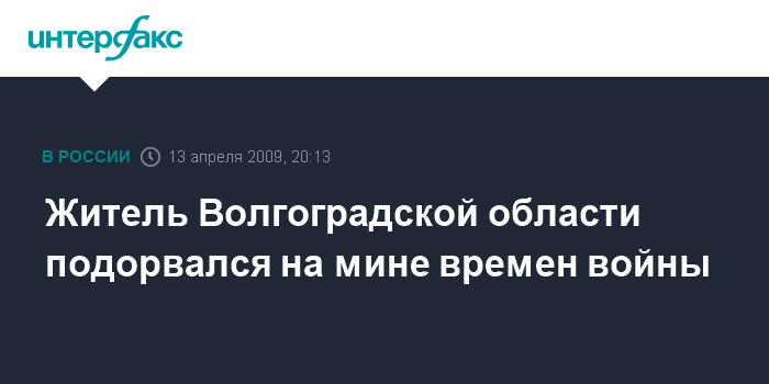 Волгоград. 13 апреля. INTERFAX.RU - В Октябрьском районе Волгоградской области в результате взрыва боеприпаса времен Великой Отечественной войны погиб мужчина.
