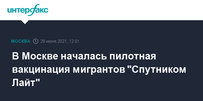 "Еще один шаг, который мы сделали – это тестирование системы вакцинации мигрантов. На первом этапе мы организовали прививку "Спутником Лайт". (...) Вакцинация мигрантов начинается в пилотном режиме, по заявкам работодателей, подпадающих под требования постановления главного государственного санитарного врача Москвы. (...) В дальнейшем мы будем упрощать эту схему", - сказал Собянин.