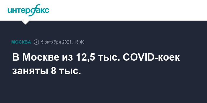 Москва. 5 октября. INTERFAX.RU - Восемь тысяч из развернутых 12,5 тысяч коек для больных коронавирусом заняты в Москве, заявил мэр столицы Сергей Собянин.