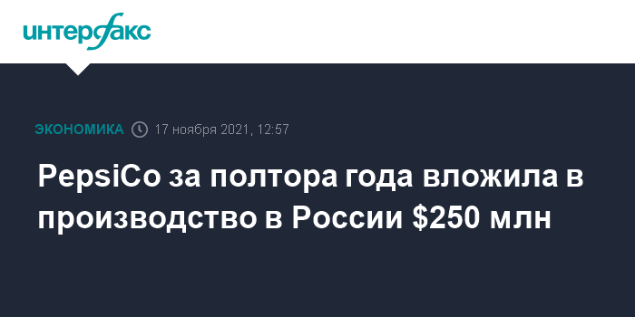 PepsiCo за полтора года вложила в производство в России $250 млн