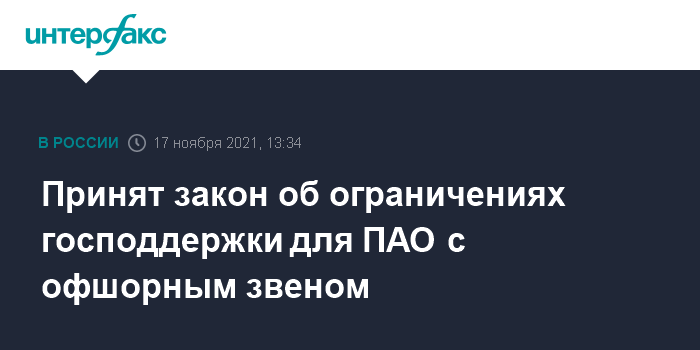 Принят закон об ограничениях господдержки для ПАО с офшорным звеном