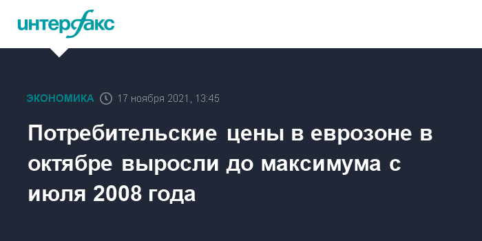 Потребительские цены в еврозоне в октябре выросли до максимума с июля 2008 года