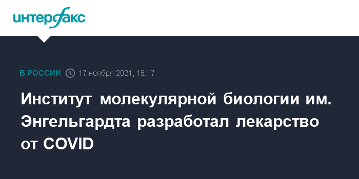 Институт молекулярной биологии им. Энгельгардта разработал лекарство от COVID