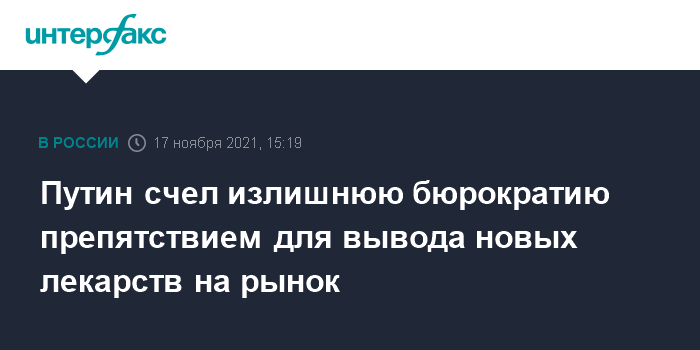 Москва. 17 ноября. INTERFAX.RU - Президент РФ Владимир Путин заявил, что излишняя бюрократия при разработке препаратов, в том числе от рака, мешает доводить нужные лекарства до людей.