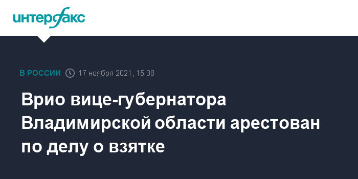 Врио вице-губернатора Владимирской области арестован по делу о взятке