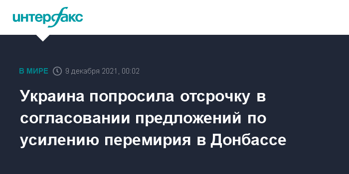 Украина попросила отсрочку в согласовании предложений по усилению перемирия в Донбассе