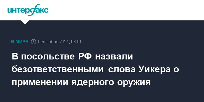 В посольстве РФ назвали безответственными слова Уикера о применении ядерного оружия