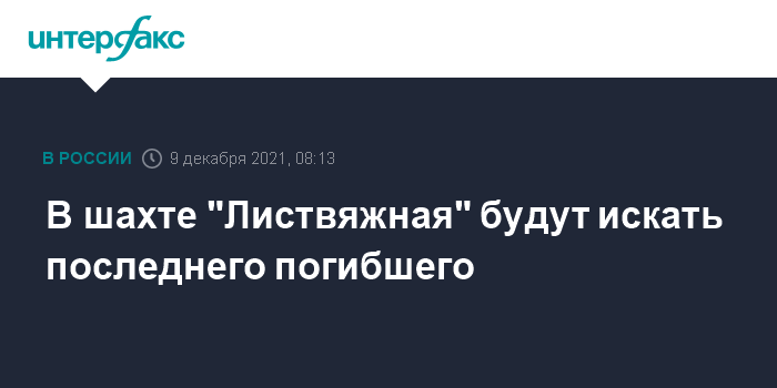 Москва. 9 декабря. INTERFAX.RU - В Кузбассе горноспасатели повторно обследуют выработки шахты "Листвяжная", чтобы найти погибшего шахтера, сообщили в пресс-службе МЧС. Он единственный, кого до сих пор не нашли после взрыва и пожара.