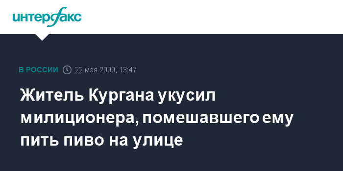 Житель Кургана укусил милиционера, помешавшего ему пить пиво на улице