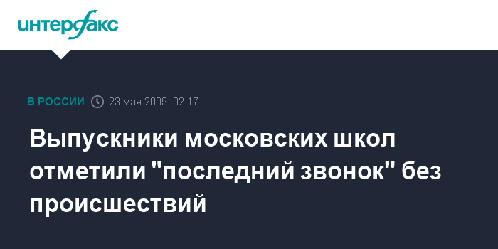 Москва. 23 мая. ИНТЕРФАКС-МОСКВА - В Москве 120 тысяч школьников отметили "последний звонок" без серьезных нарушений общественного порядка.