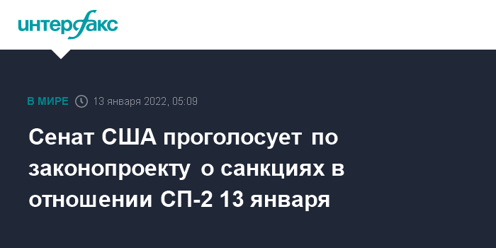 Слушания по законопроекту S.3436 "О защите энергетической безопасности Европы" начнутся 13 января в 10:00 (18:00 по Москве), сообщается на сайте Сената. Само голосование запланировано примерно на 14:45 (22:45 по Москве).