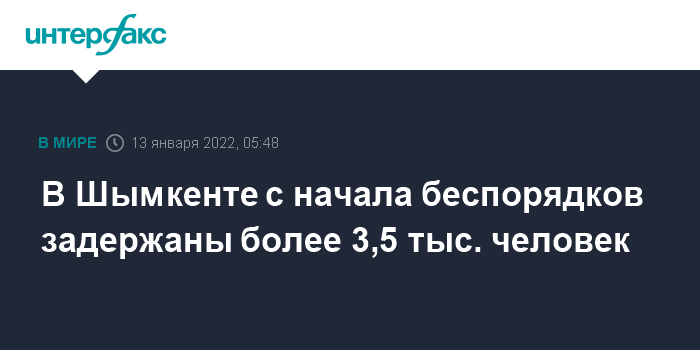 Москва. 13 января. INTERFAX.RU - В Шымкенте (город республиканского значения на юге Казахстана) с момента начала беспорядков в полицию доставлено 3 520 человек, 271 из них арестованы, сообщают местные СМИ со ссылкой на комендатуру города.