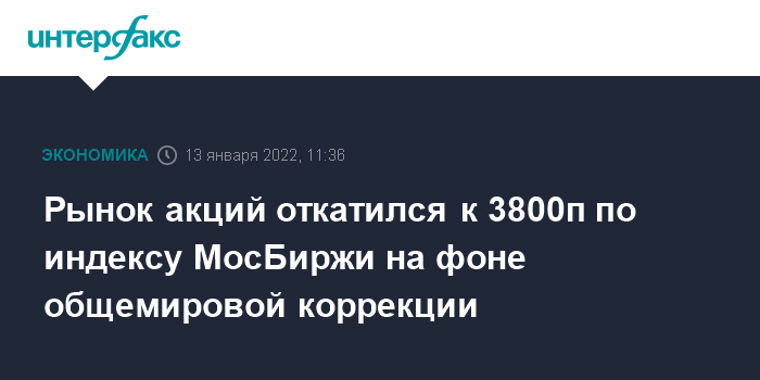 Рынок акций откатился к 3800п по индексу МосБиржи на фоне общемировой коррекции