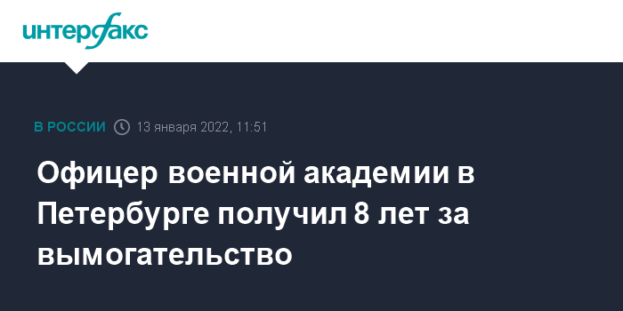 Офицер военной академии в Петербурге получил 8 лет за вымогательство