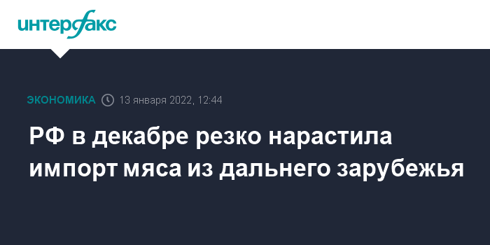 Всего в декабре 2021 года РФ импортировала мяса и субпродуктов на $109,2 млн, что на 34,3% больше, чем годом ранее. По сравнению с ноябрем поставки выросли на 33,2%.
