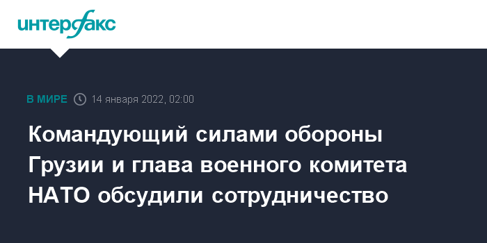 Москва. 14 января. INTERFAX.RU - Командующий силами обороны Грузии генерал-майор Георгий Матиашвили в четверг в ходе официального визита в Брюссель обсудил с председателем военного комитета НАТО адмиралом Робертом Бауэром приоритеты военного сотрудничества, сообщила пресс-служба министерства обороны республики.