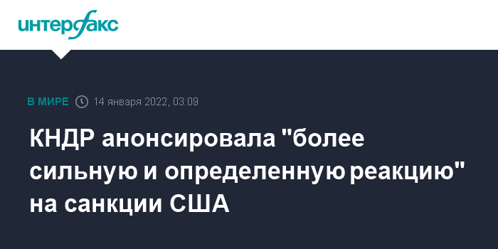 Москва. 14 января. INTERFAX.RU - Северная Корея предупредила, что ей придется продемонстрировать "более сильную и определенную реакцию" после того, как США ввели новые санкции в отношении Пхеньяна.