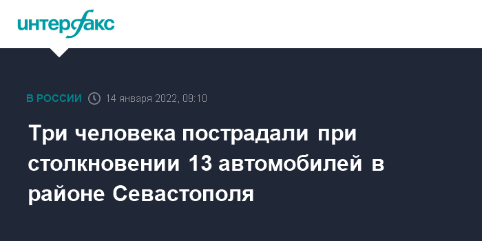 Москва. 14 января. INTERFAX.RU - Столкновение 13 автомобилей произошло в пятницу утром из-за обледенения на дороге Симферополь - Севастополь, сообщили в пресс-службе УМВД России по Севастополю.