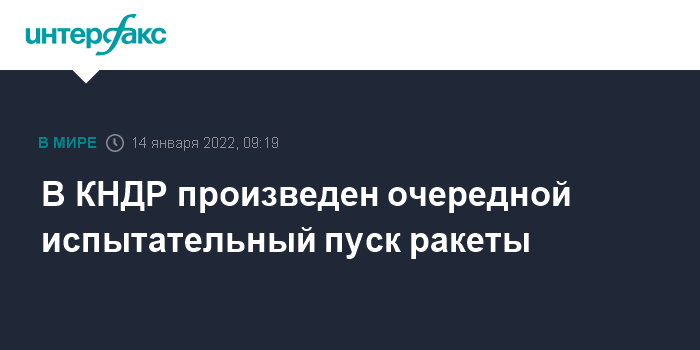 Москва. 14 января. INTERFAX.RU - Южнокорейские военные зафиксировали пуск ракеты, произведенный с территории КНДР в восточном направлении, сообщает в пятницу агентство "Ренхап".