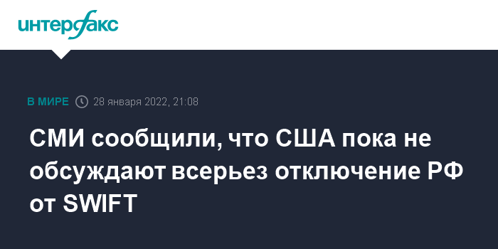 СМИ сообщили, что США пока не обсуждают всерьез отключение РФ от SWIFT