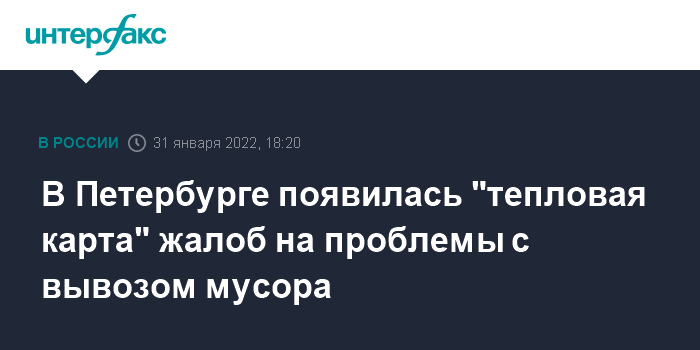 Москва. 31 января. INTERFAX.RU - Петербургский Закс разместил на официальном сайте "тепловую карту" территорий, где наблюдаются проблемы с вывозом твердых бытовых отходов. Об эсообщает пресс-служба парламента в понедельник.