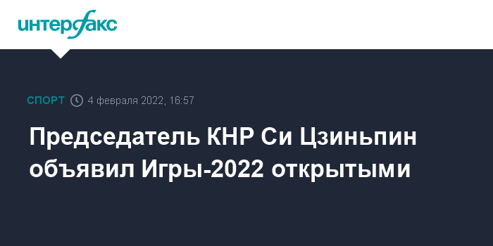 Москва. 4 февраля. INTERFAX.RU - Председатель Китайской народной республики Си Цзиньпин объявил Олимпийские игры-2022 в Пекине открытыми.