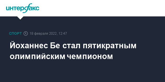 Йоханнес Бе стал пятикратным олимпийским чемпионом