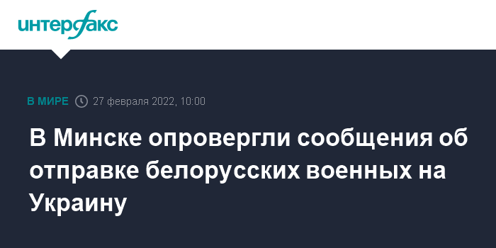 Москва. 27 февраля. INTERFAX.RU - В министерстве обороны Белоруссии в воскресенье опровергли сообщения об отправке военных белорусской армии на Украину.
