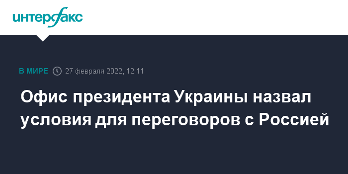 Офис президента Украины назвал условия для переговоров с Россией