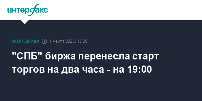 "СПБ" биржа перенесла старт торгов на два часа - на 19:00