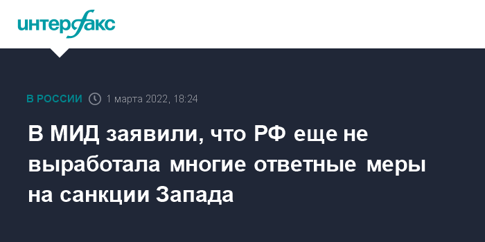 В МИД заявили, что РФ еще не выработала многие ответные меры на санкции Запада