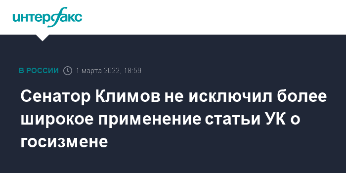 Сенатор Климов не исключил более широкое применение статьи УК о госизмене