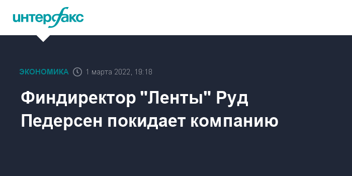 Москва. 1 марта. INTERFAX.RU - Финансовый директор "Ленты" Руд Педерсен покидает компанию, следует из материалов компании.