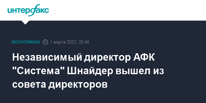 Шнайдер входил в совет директоров ПАО АФК "Система" с 2020 года.