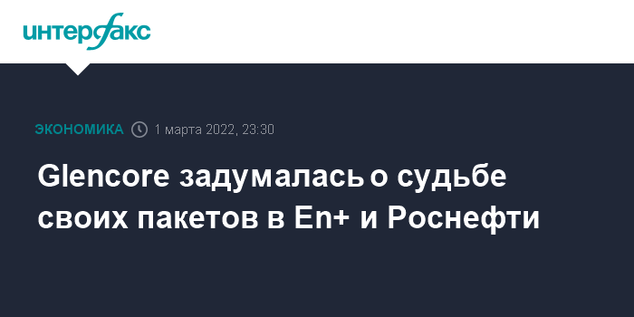 "Glencore осуждает действия, предпринятые правительством России против народа Украины. У нас нет операционной деятельности в РФ, и масштаб трейдинговых операций не значителен для Glencore. Мы пересматриваем всю нашу бизнес-активность в России, включая доли в En+ и "Роснефти", - сказано в заявлении Glencore.