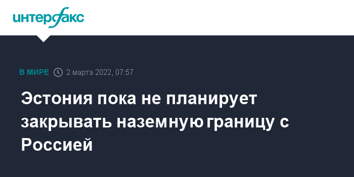 Эстония пока не планирует закрывать наземную границу с Россией