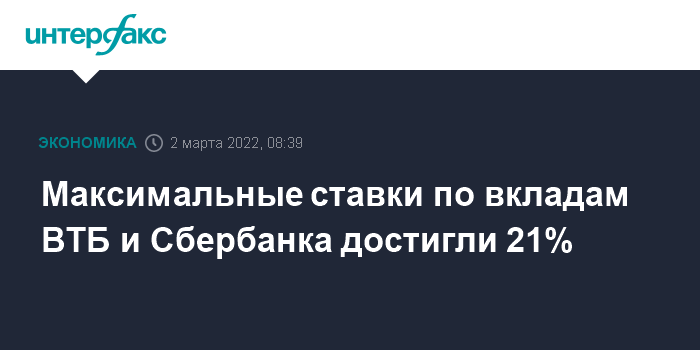 Максимальные ставки по вкладам ВТБ и Сбербанка достигли 21%