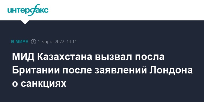 МИД Казахстана вызвал посла Британии после заявлений Лондона о санкциях